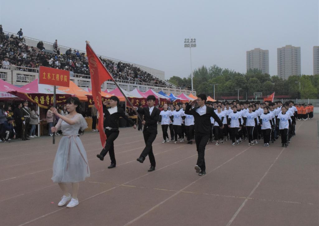 迟日江山丽,春风花草香。在这充满无限生机和活力的季节,同学们欢聚在绿茵场上,迎来南阳理工学院第26届田径运动会。开幕式伊始,由我校国旗护卫队标兵就位,踏着隆重的鼓乐声,国旗护卫队和我校16个学院的方队依次通过主席台接受检阅。