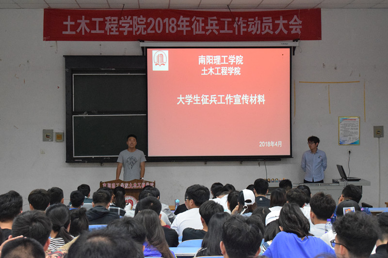 为贯彻落实国家征兵政策,激励学院适龄大学生从军报国的热情,4月19日晚,我院于五号楼五阶一教室开展征兵宣传活动。出席本次宣传活动的有学院党委书记杨庆年,团学办公室主任冯博,辅导员徐君怡、任寰,各年级学生参加。