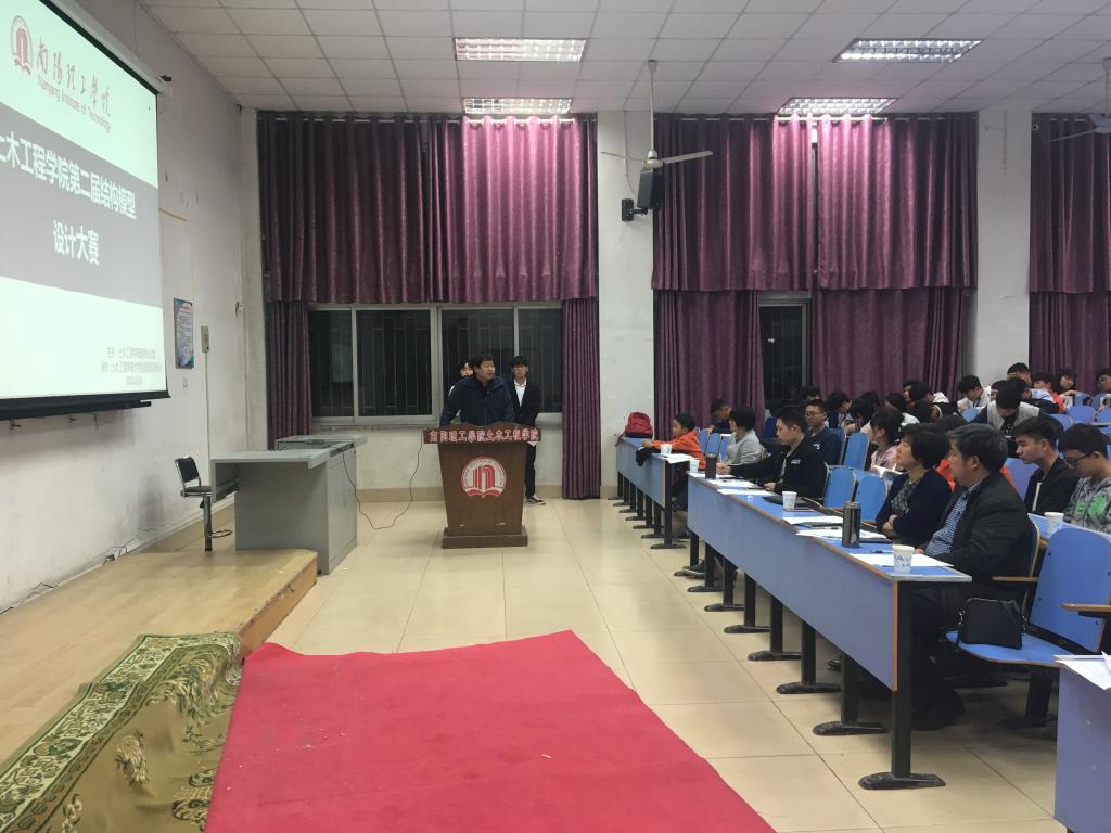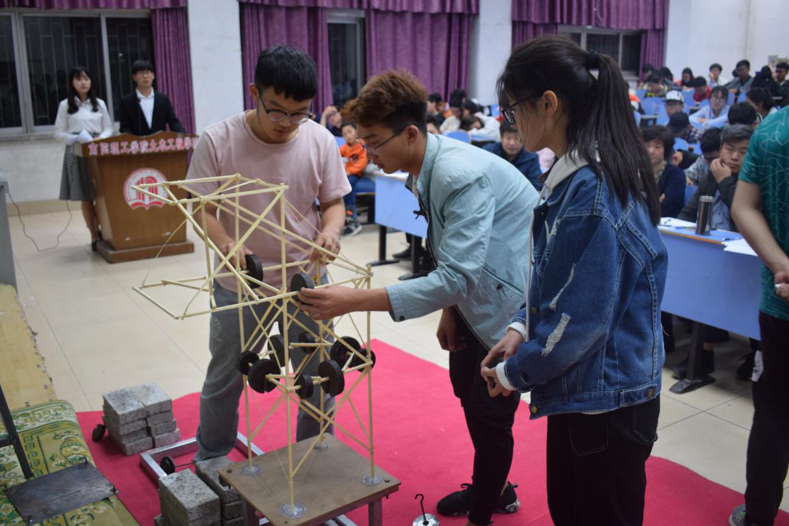 (宣传部 文/郑开旭 图/彭彦庆)为提高学生对结构的设计、分析能力以及对建筑结构知识的综合运用能力,同时为参加省级和国家级结构模型设计竞赛进行人才选拔和培育,4月16日晚,我院于五号教学楼五阶一教室举行了土木工程学院第二届结构模型设计大赛。院长陈孝珍,党委书记杨庆年,肖新科等部分骨干教师出席了本次大赛。