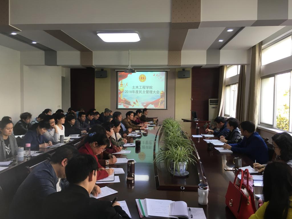 3月27日下午,土木工程学院全体教师在会议室召开2018年度民主管理大会,会议由学院工会主席杨庆年同志主持。