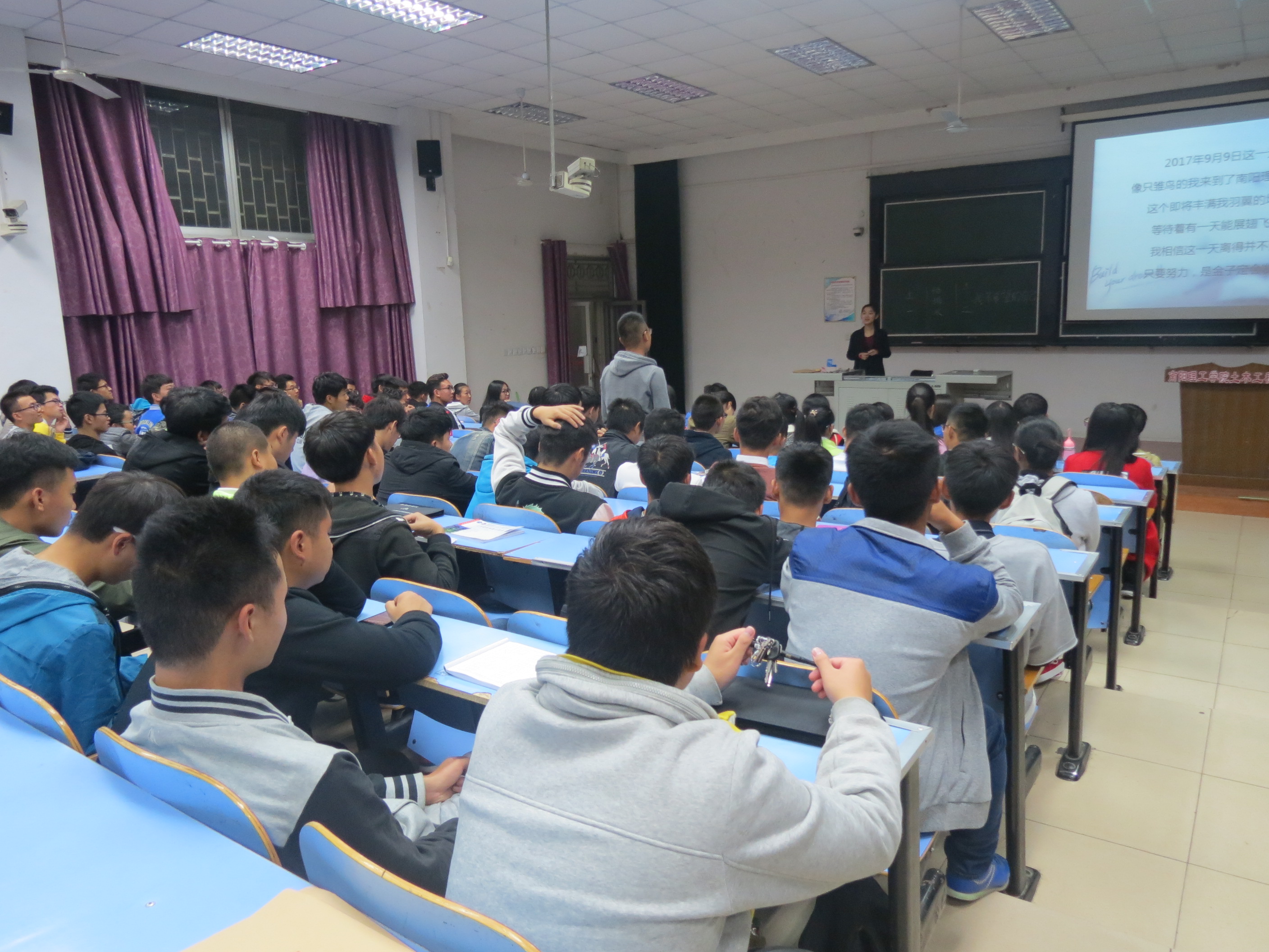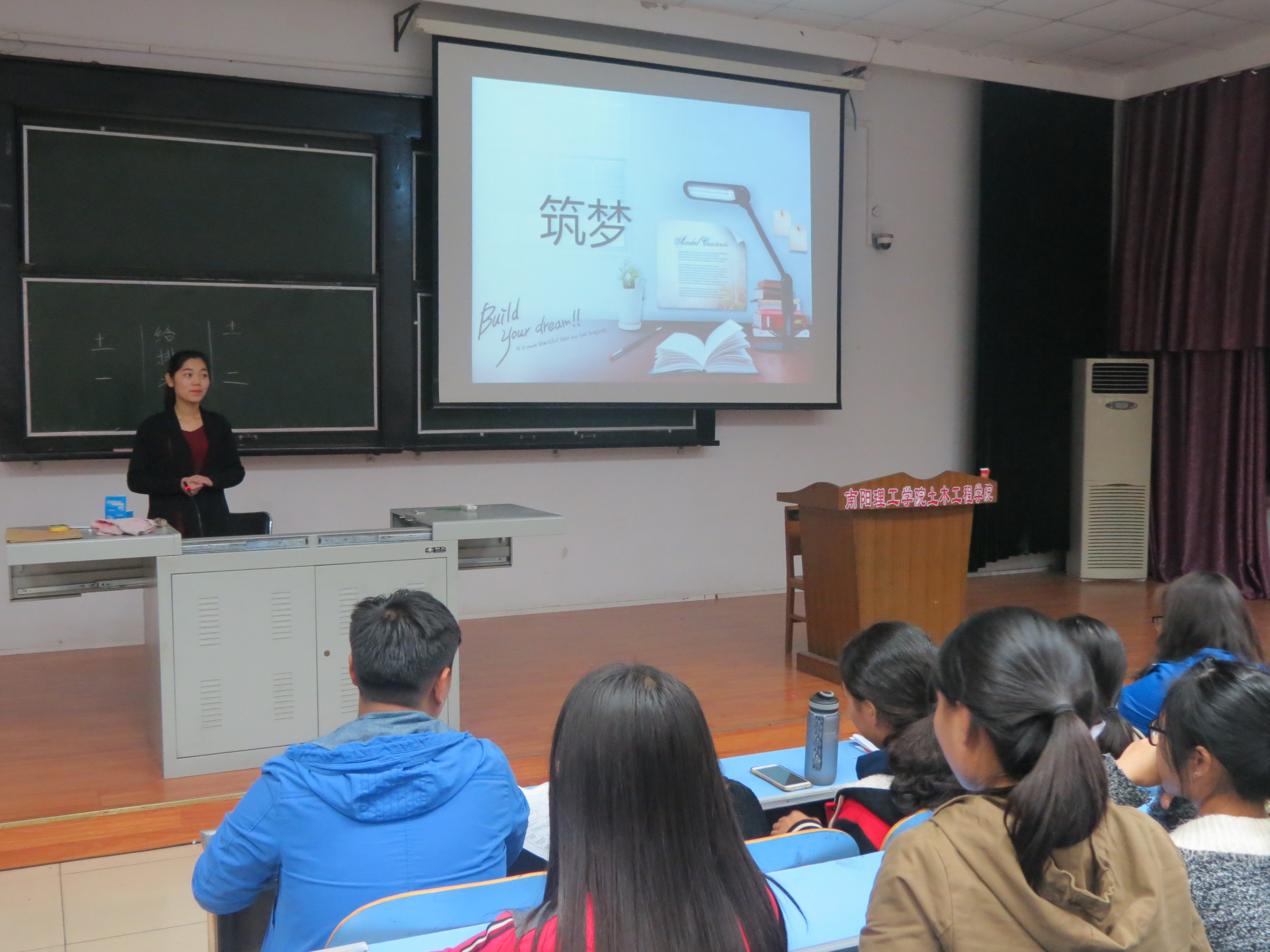 讲座开始,任老师以“筑梦”为主题,从学生的角度讲述大一新生初到大学的感受,将“筑梦”分为心理篇、梦想篇、求职篇、个人篇、恋爱篇与学生干部篇六部分,详细为学生们讲解大学四年应怎样度过。其中,任老师在讲梦想篇时,以吃喝玩乐,认真学习两种完全不同的大学生活状态作对比,让同学们更加明白大学应如何做选择。同时通过对比同在沙滩上的沙子与珍珠让学生们寻求自己的价值。任老师在恋爱方面告诫学生们:喜欢你的人,给你现在;爱你的人,给你未来。