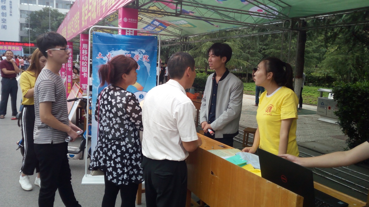 9月9日,准备已久的迎新工作正式拉开帷幕。虽然天气有些阴沉,但是迎新点工作人员的热情丝毫没有减弱,早早就在迎新摊位准备。院党委书记杨庆年、党委副书记任朝斌、2017级辅导员任寰老师早上八点来到迎新接待站,和学长团成员、学生会干部等所组成的志愿者们一起迎接新生的到来。