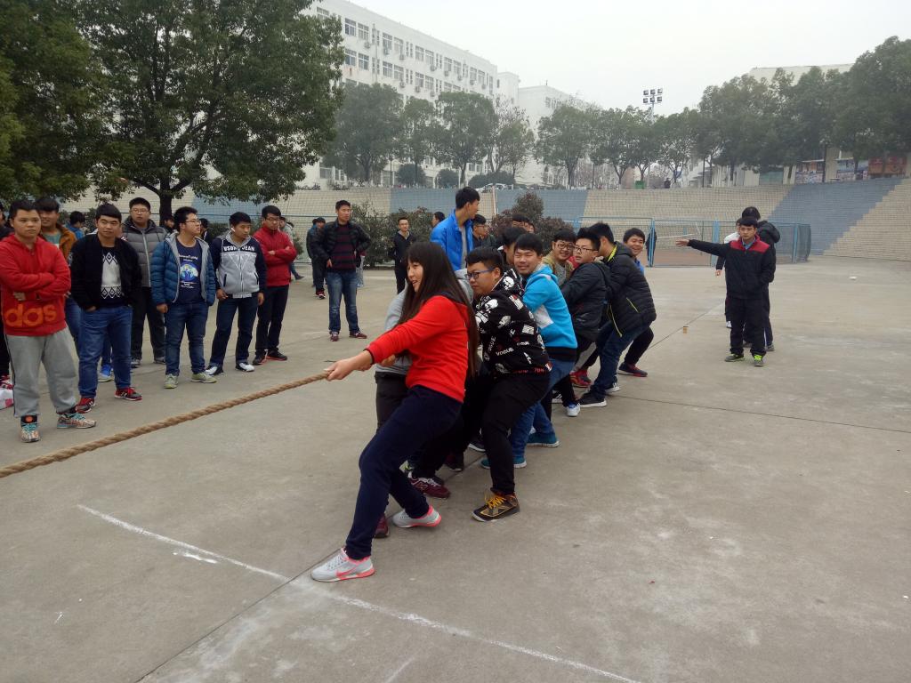 天气微凉,然而同学们的热情高涨,参赛队员都认真的进行赛前热身。比赛还未开始时,双方队员即进入“战斗”状态,双手紧握麻绳,双脚用力着地,身体微向后倾——参赛队员齐心协力凝成了一股绳!周围的同学们用他们的加油声点燃了选手们的激情,比赛十分激烈。在一轮轮的比拼后,建工二班荣获第一名、给排水班荣获第二名。