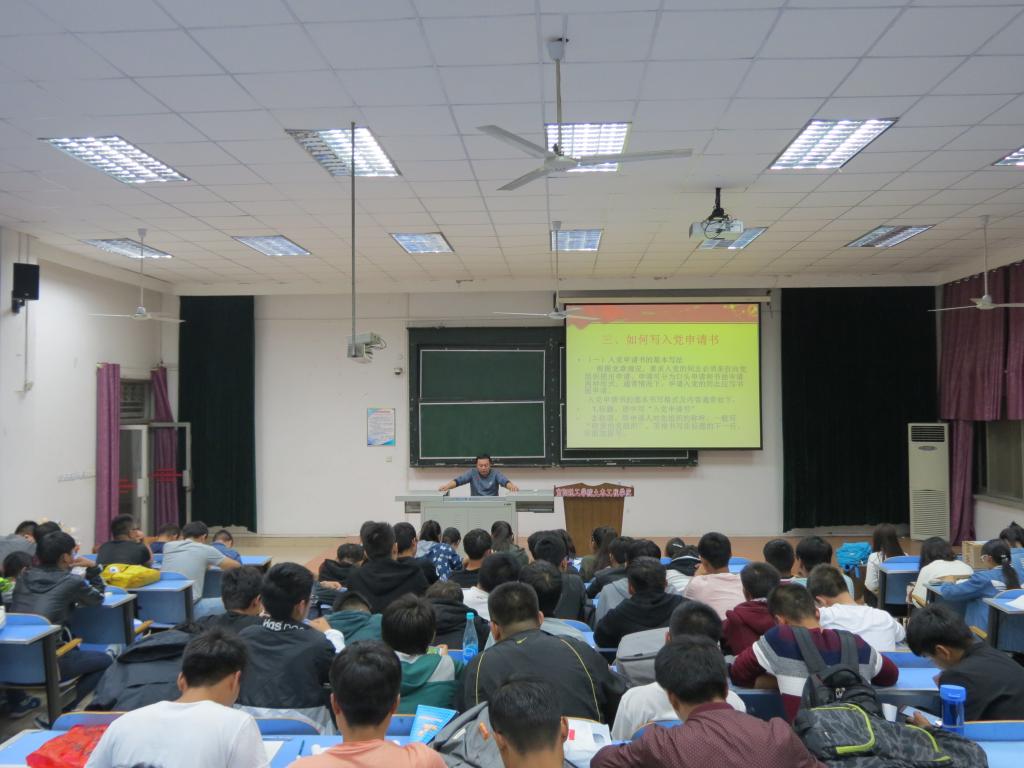 讲座的开始,任老师以风趣幽默的方式进行了自我介绍。接着从党的基本知识、党的发展历程及如何入党三个方面展开了本次讲座的主要内容,且结合自身的经历向同学们讲述了在中国共产党领导下的进步,让同学们懂得了身为共产主义接班人自己所肩负的任务与使命。