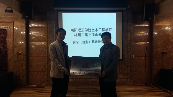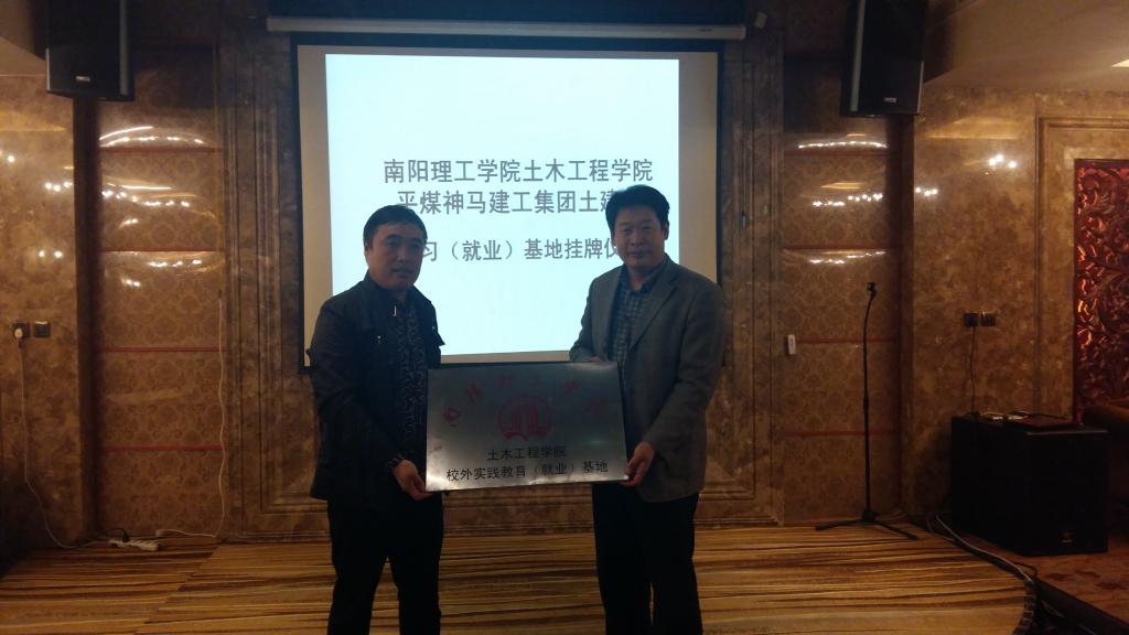 会后,工作组一行分别与平煤神马建工集团土建处、河南天王钢构有限公司、林州二建平顶山分公司进行座谈,就校企合作前景、实习就业基地建设、人才培养方案等进行交流沟通,双方达成广泛一致,决定建立长期的合作关系。三家单位负责人分别和土木工程学院党委书记杨庆年共同为我校土木工程学院校外实践教育(就业)基地揭牌。