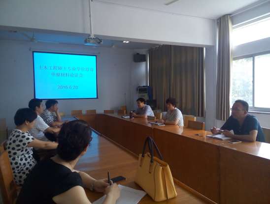 会议由陈孝珍书记主持,杨庆年副院长、张辉副书记和土木工程专业部分骨干教师参加论证。大家围绕建筑与土木工程硕士专业学位培育点申报材料进行了认真讨论,对每一句话的表述进行认真反复修改,论证会从下午五点一直持续到晚上八点。
