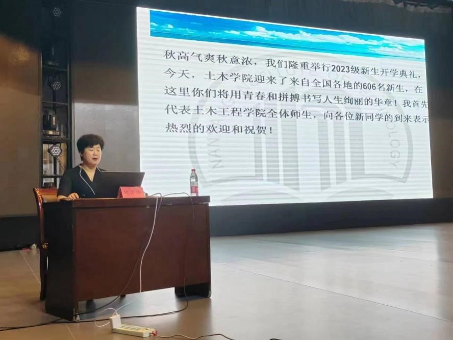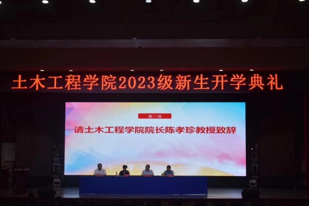 典礼首先由土木工程学院院长陈孝珍教授致辞,对各位新生的到来表示欢迎并对各位新生们进入一个崭新的人生阶段表示热烈祝贺。