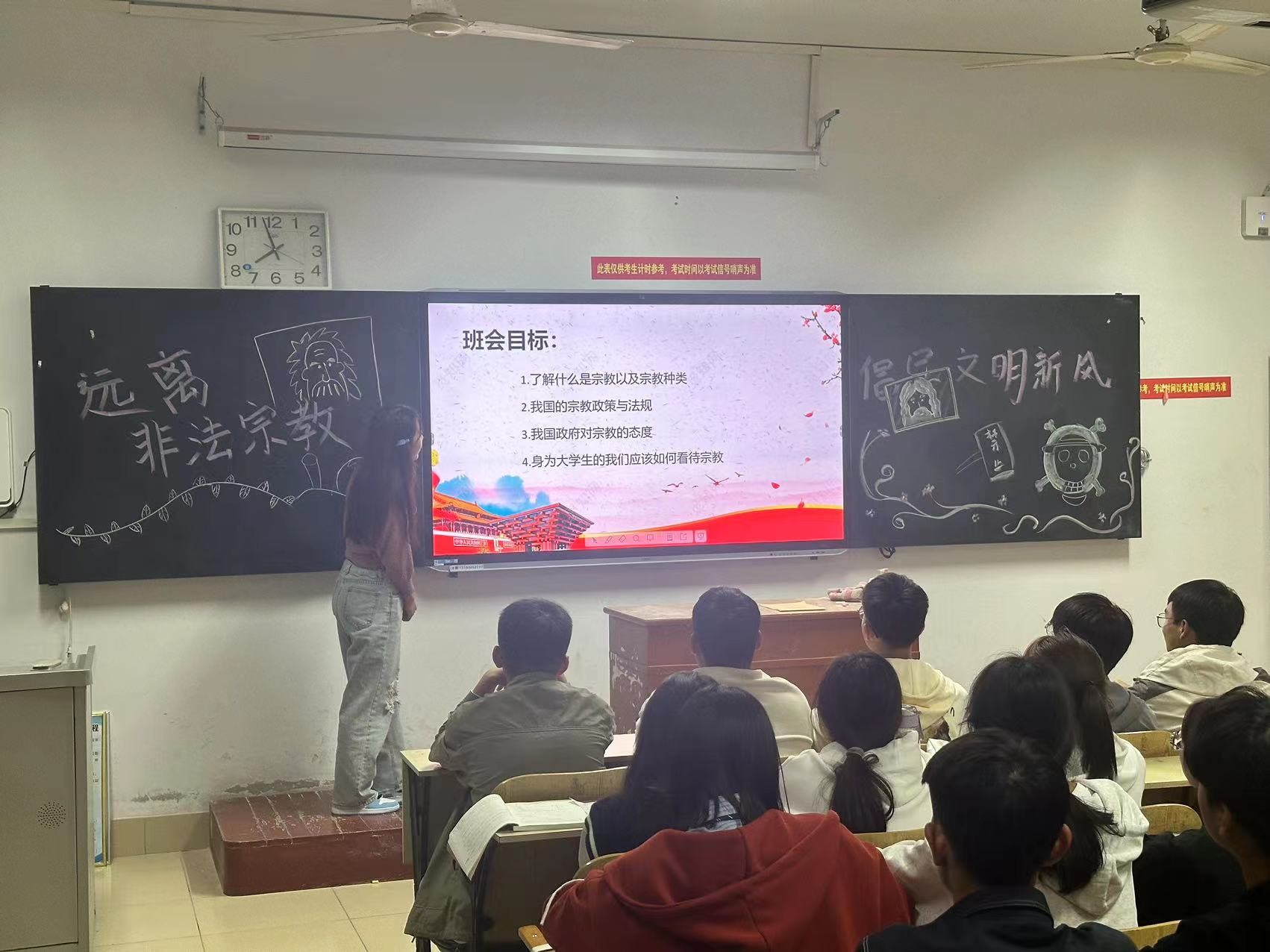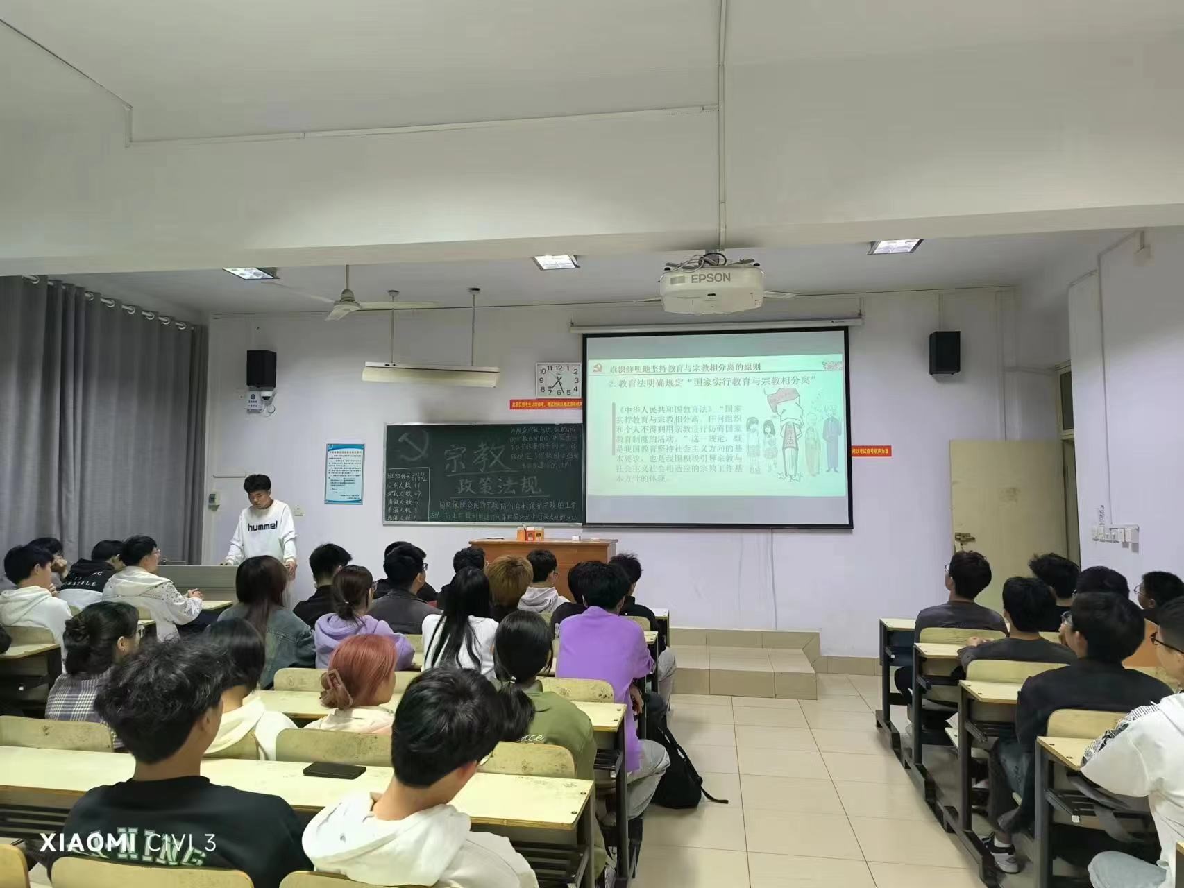 本网讯(特约记者/张子正)为帮助学生树立正确的宗教观,自觉抵制宗教渗透和校园传教活动,努力学习科学知识充实自己,勇于担当历史使命,坚定前进信心。土木工程学院于10月7日-10日在五号教学楼召开民族宗教政策法规宣传主题班会,学院全体学生参加。