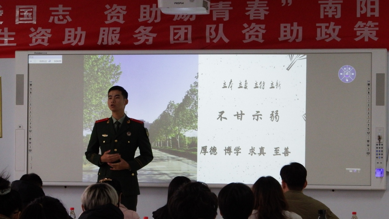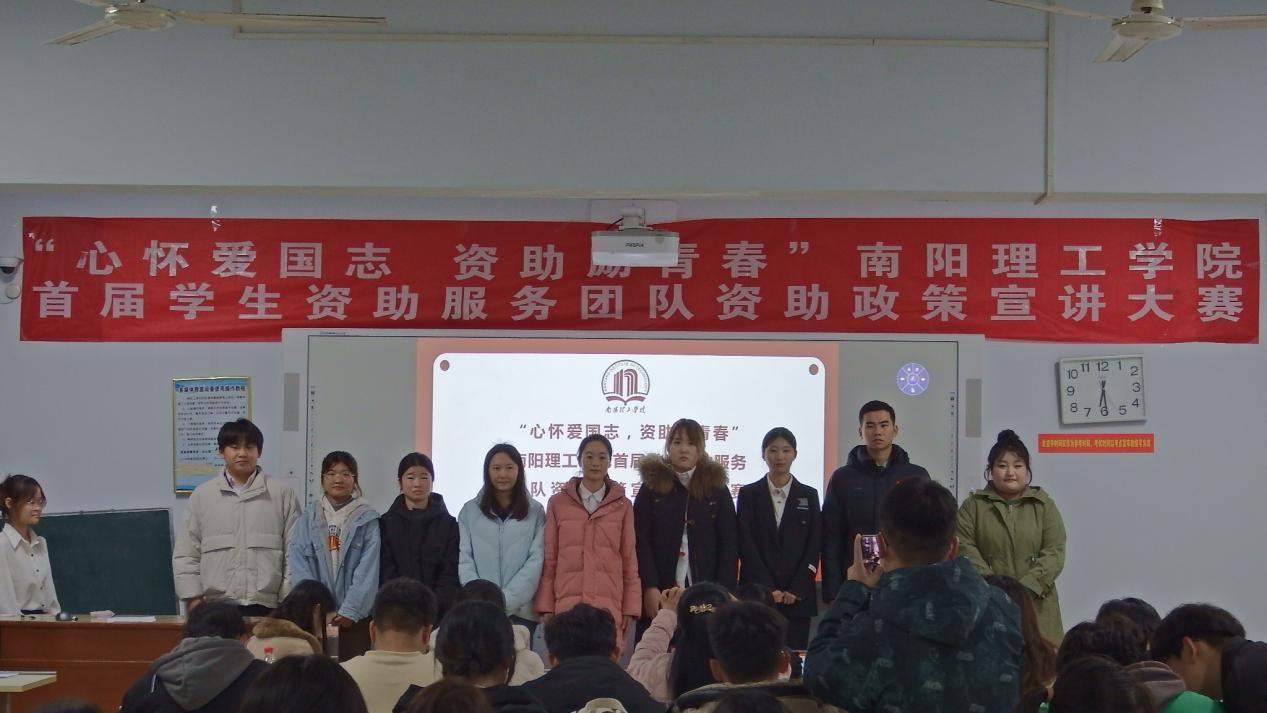 为全面学习贯彻习近平新时代中国特色社会主义思想,深入践行党的二十大精神,落实教育部关于进一步加强学生资助工作的要求,全面宣传国家和学校学生资助政策,加强学生资助工作队伍建设,11月28日下午,由土木工程学院承办的“心怀爱国志,资助励青春”南阳理工学院首届学生资助服务团队资助政策宣讲大赛复赛第三组的比赛在5509教室顺利举办。
