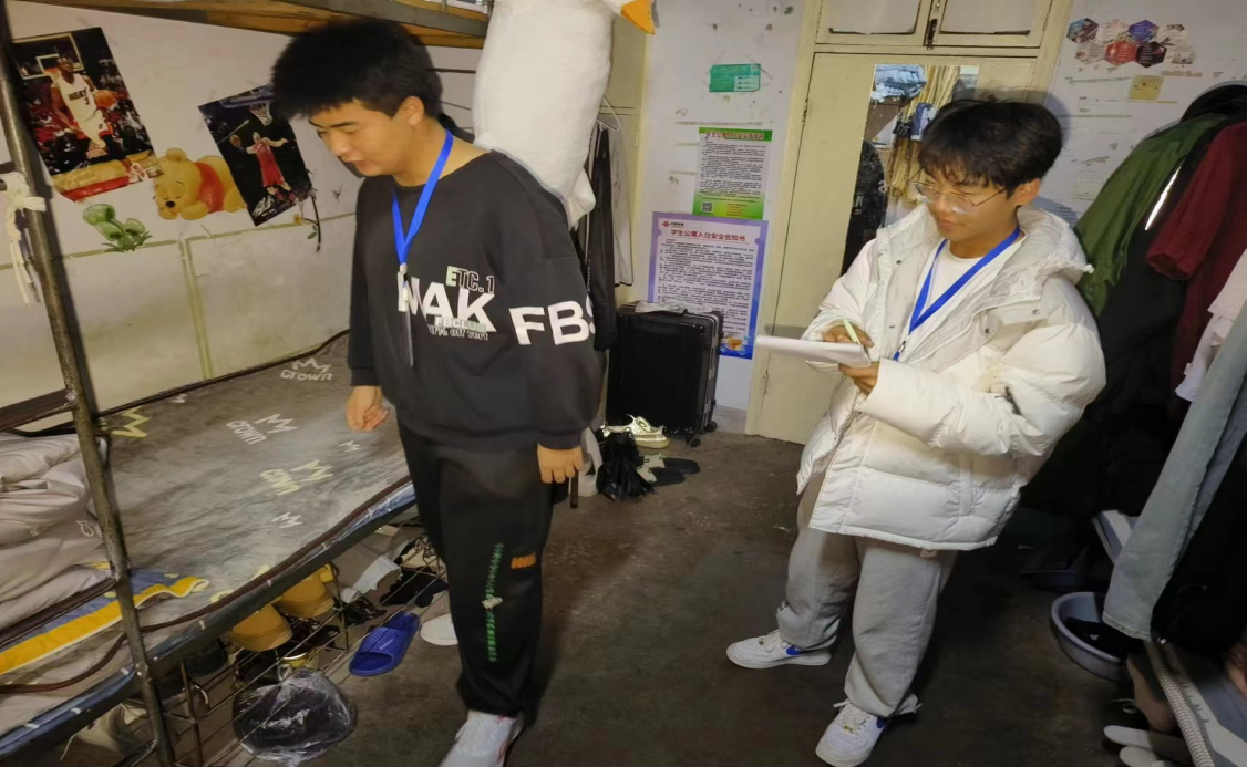 活动中,学生工作人员走访教室和宿舍,对室内地面、物品摆放和卫生死角等进行检查,重点针对宿舍内的违规使用大功率电器的情况进行详细的检查、记录和监督整改,发现问题及时进行解决,确保同学们有一个安全干净的学习生活环境。