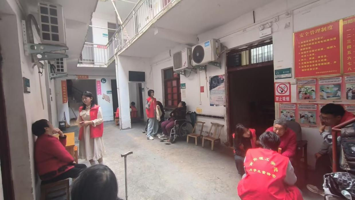 到达敬老院后,志愿者给老人们送上准备好的燕麦、牛奶等营养品,陪老人们聊天,帮助他们做一些小事,例如梳头、按摩、剪指甲等,在点滴细节上关怀老人,给他们送去温暖。最后志愿者们打扫完大院卫生并为老人们表演节目,整个养老院里充满了温馨愉快的氛围,老人脸上也洋溢着幸福的笑容。