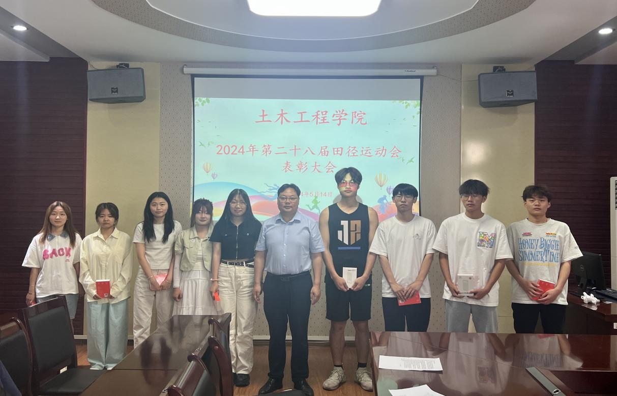 本网讯(特约记者/董崇强)5月14日下午16:00,土木工程学院在5号教学楼二楼会议室举办2024年春季田径运动会表彰会。土木工程学院党委书记田进军出席,学工办张子正老师、学生会干部、全体运动员和2023级各班文体委员参加了此次大会。
