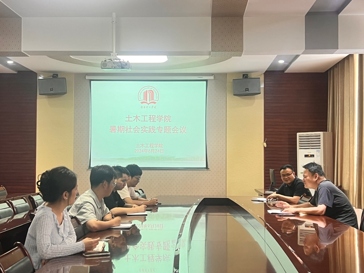 6月24日上午,土木工程学院在学院会议室召开2024年暑期“三下乡”暑期社会实践工作会议,学院党委副书记冯博和副院长宋建阳出席,各实践团队负责老师参加。