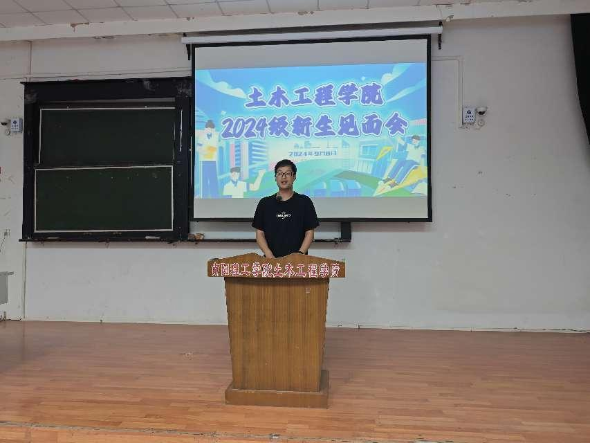 会议中,张子正老师首先代表学院对2024级新生的到来表示热烈欢迎,接着从学校的校情校史、大学生行为准则、校园文化生活、网络安全和宿舍安全等方面进行了讲解,然后从学院的基本情况、专业设置和就业创业等方面进行了介绍说明,最后对大家提出了三点建议:一是要心存感恩,珍惜时光。感恩父母、老师、同学和社会,保持谦逊好奇,不负韶华、不负期待;二是要志存高远,坚定理想信念。在大学的四年里,要不断提升自己的专业素养和综合素质能力;三是要积极乐观,心胸宽广。从容面对未来的各种挑战,拥有宽容之心,善待他人。