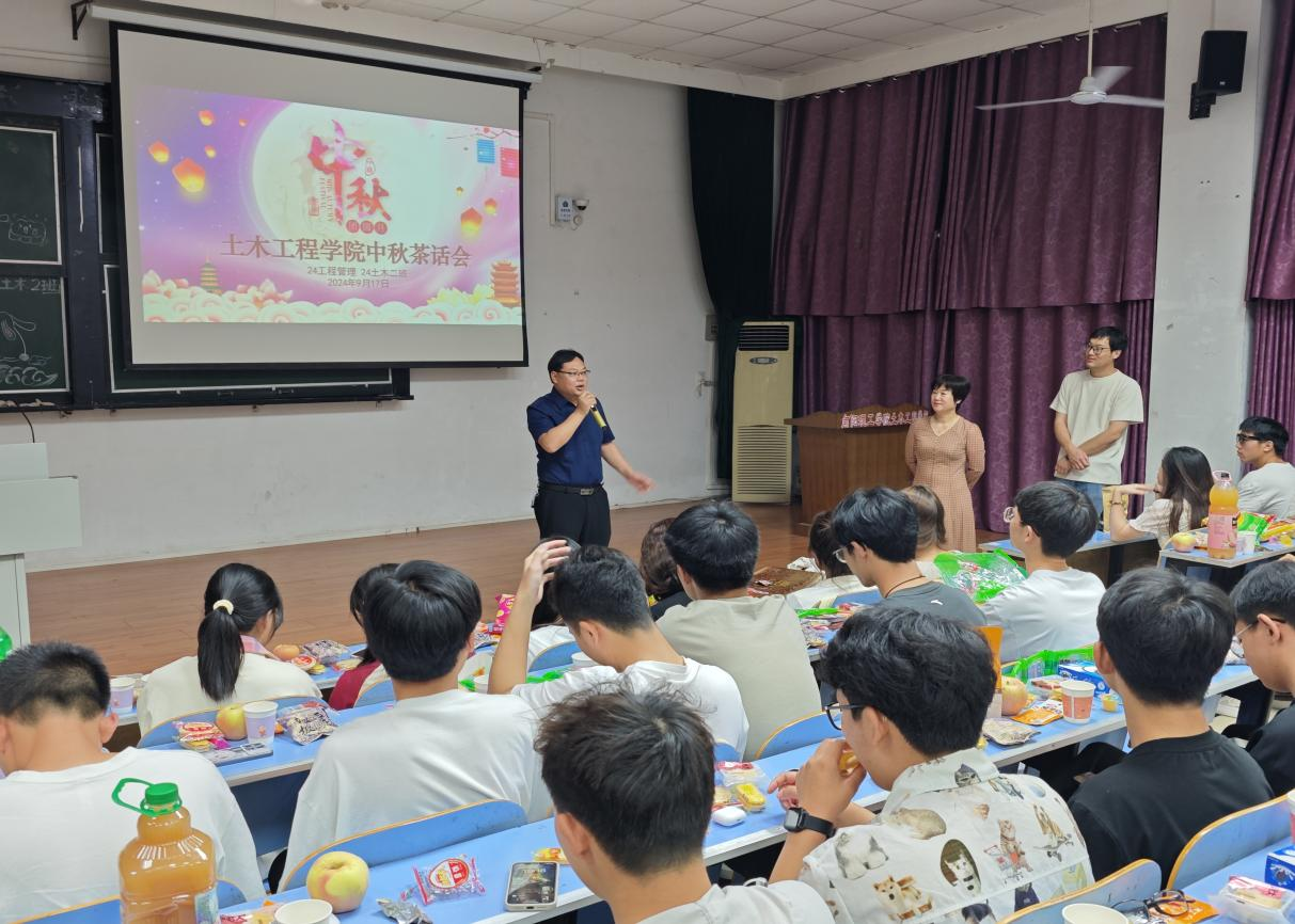 本讯网(特约记者/王照雄)在这个丹桂飘香、明月高悬的中秋佳节,9月17日晚上19:30,土木工程学院组织全体2024级新生在5号教学楼各班自习室举办了一场温馨而热烈的中秋茶话会,新生辅导员和各班学业导师参加。此次活动旨在让新生们在异乡也能感受到家的温暖,增进彼此之间的交流与情谊。学院党委书记田进军、院长陈孝珍亲临现场,给同学们送上祝福,与同学们共庆佳节。
