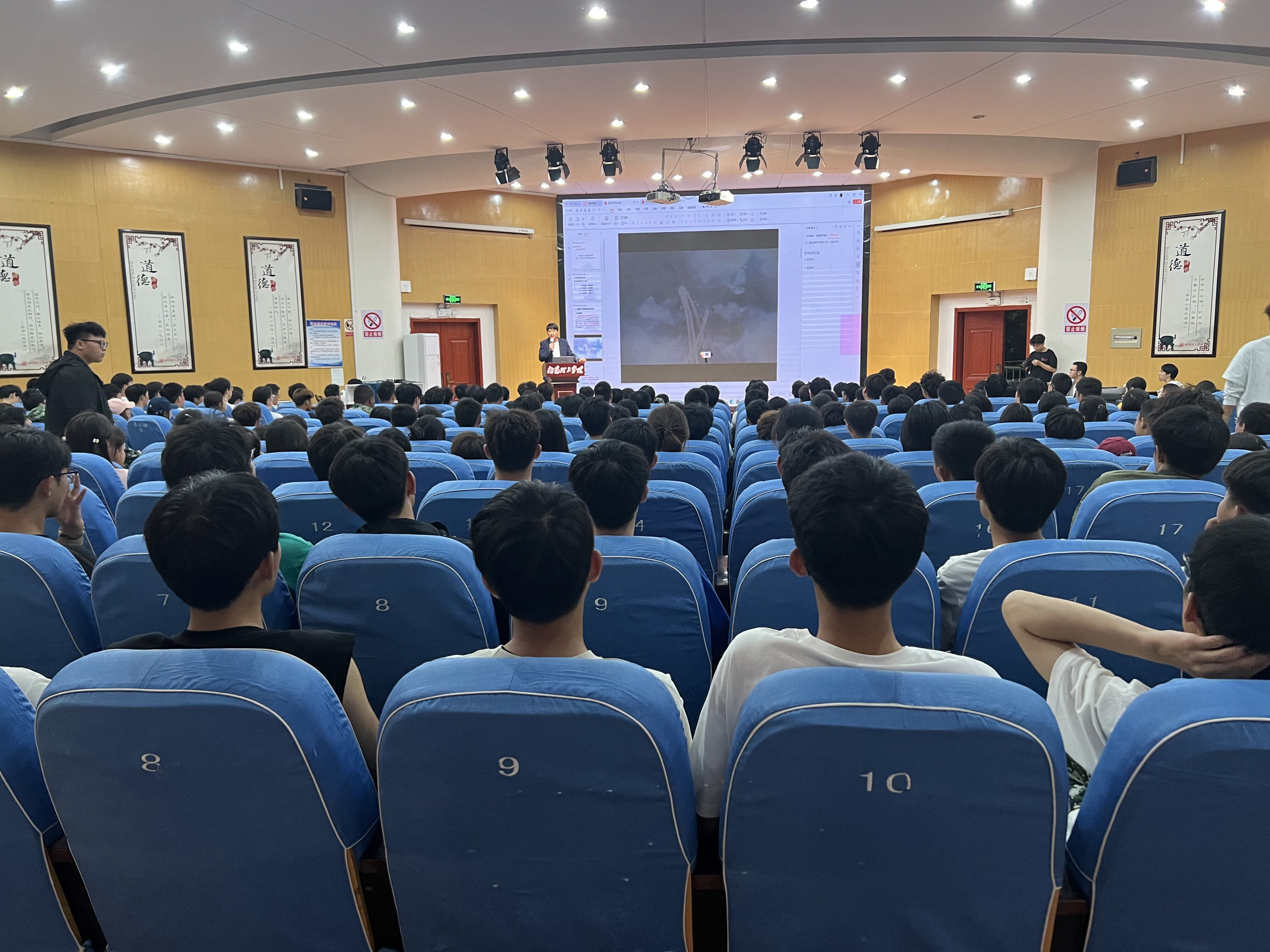 本网讯(特约记者/冀艺晨)9月22日晚,土木工程学院在学校第二报告厅举办土木大讲堂之创新创业专题讲座,邀请学校招生就业处郭勇老师、盛邵鹏老师和优秀创业校友但京川主讲,学院党委副书记冯博老师主持,创新创业就业指导中心主任程科老师和2024级全体同学参加。