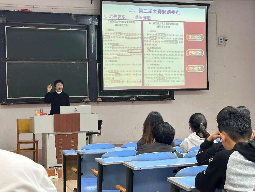 本网讯(特约记者/徐航)11月12日下午,土木工程学院在五阶二教室举办“大学生职业规划大赛”培训会,邀请学校招生就业处郭冬娥老师主讲,学院党委副书记冯博老师主持,学院2024级各班学生代表参加。