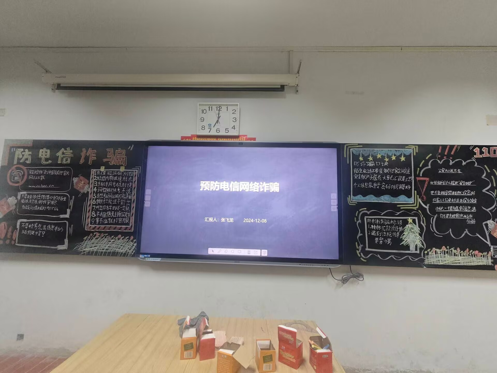 此外我院学生在教学楼各班自习室绘画“防范电信诈骗”主题板报,内容丰富、设计新颖,通过图文并茂的方式直观呈现了电信诈骗的危害性和防范措施。
