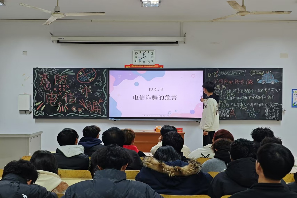 主题班会上,各班团支书通过PPT讲解、视频播放等形式,向同学们详细介绍了电信诈骗的常见类型、作案手法和防范措施。同时结合真实案例,深入剖析了诈骗分子的心理特征和作案规律,引导同学们时刻保持警惕,切勿轻信陌生人的信息和电话。