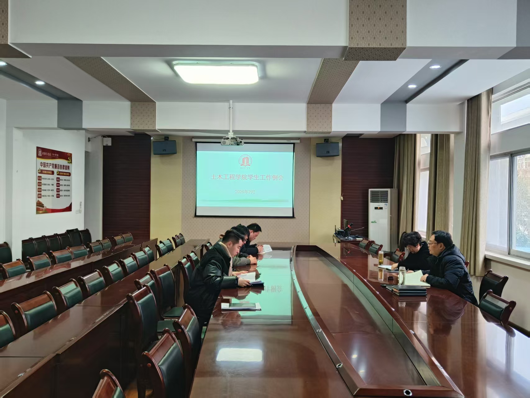 本网讯(特约记者/张子正)新学期伊始,为进一步提升学生工作水平,确保新学期各项工作顺利开展,2月17日,土木工程学院在学院会议室召开新学期学生工作会议,学院党委书记田进军、院长陈孝珍、副书记冯博和全体辅导员参加会议。