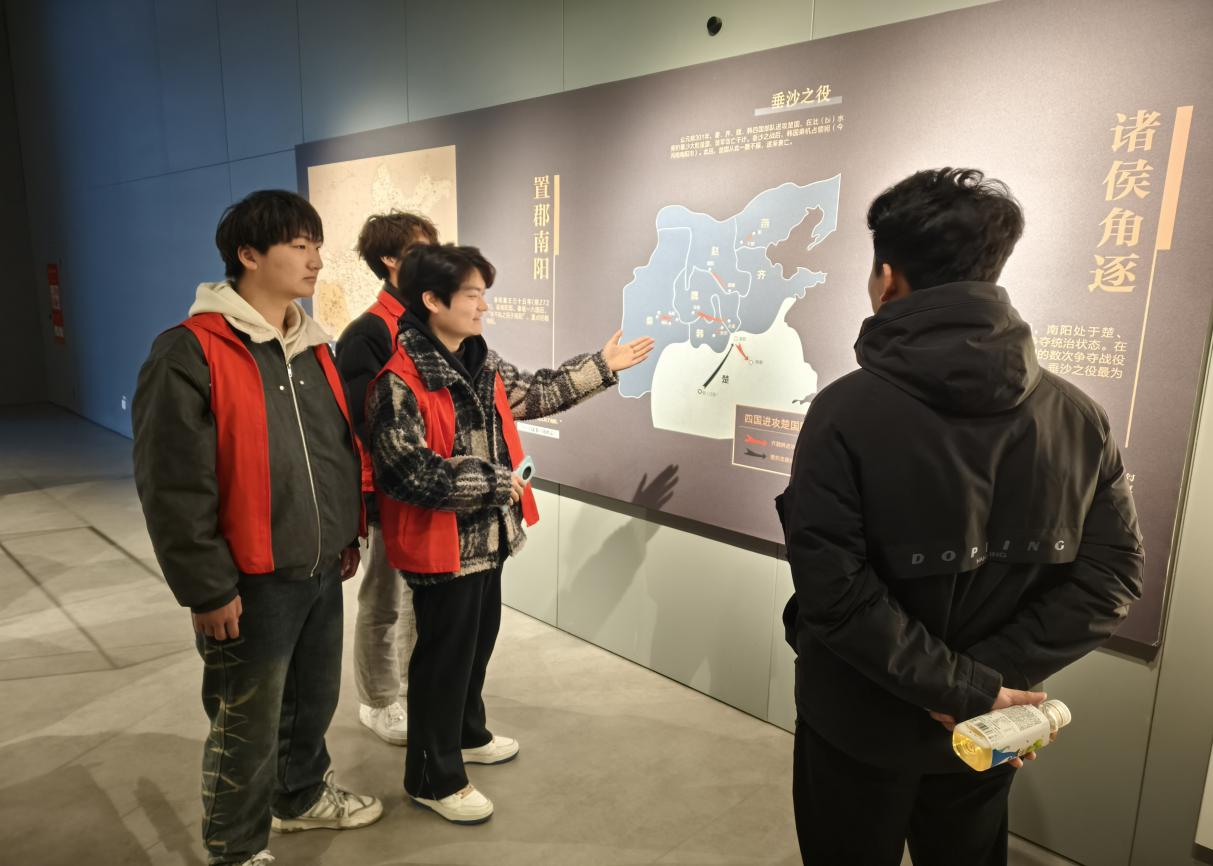 博物馆内,琳琅满目的文物如同一幅徐徐展开的历史长卷,从古老的石器时代遗物到近代的民俗文物,丰富的历史文物和详实的资料如同一幅宏大的历史画卷,无声地诉说着南阳地区悠久的历史文化。大家在详细了解了博物馆的展品分布、历史文化背景以及服务注意事项后,开始在馆内为游客提供指引、咨询等服务,并分享展品背后的历史文化故事,同时提醒游客们不触碰展品、不乱扔垃圾、安静参观等文明旅游行为规范,共同维护这片珍贵的历史文化遗产。