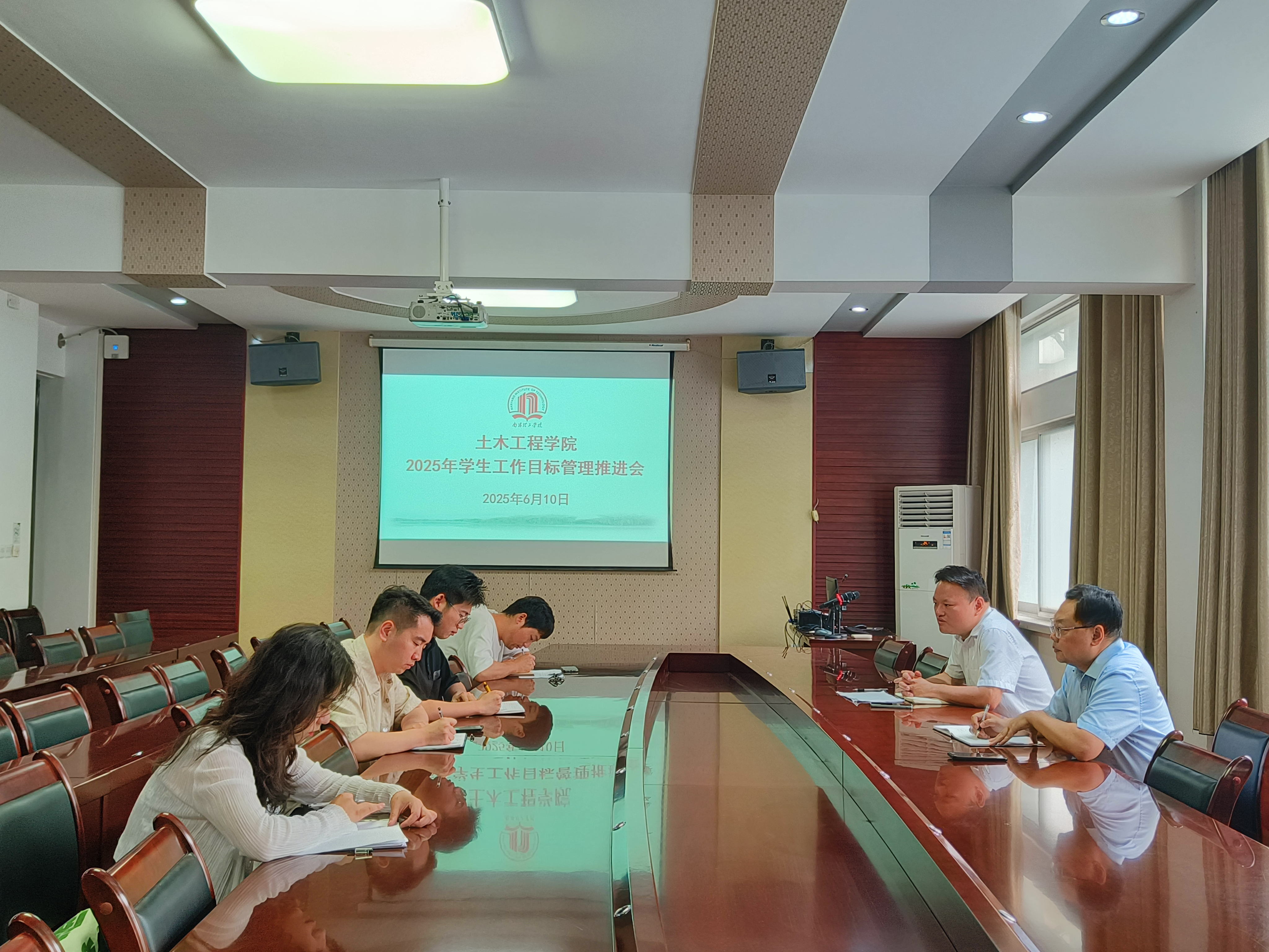 6月10日上午,土木工程学院在会议室召开2025年学生工作目标管理推进会,学院党委书记田进军出席,全体辅导员参加,会议由党委副书记冯博主持。