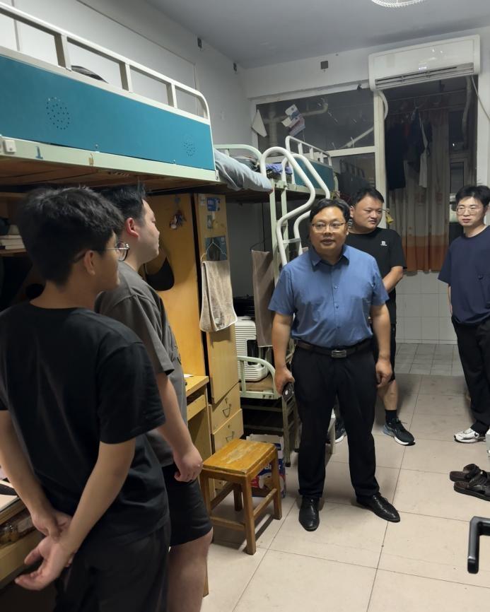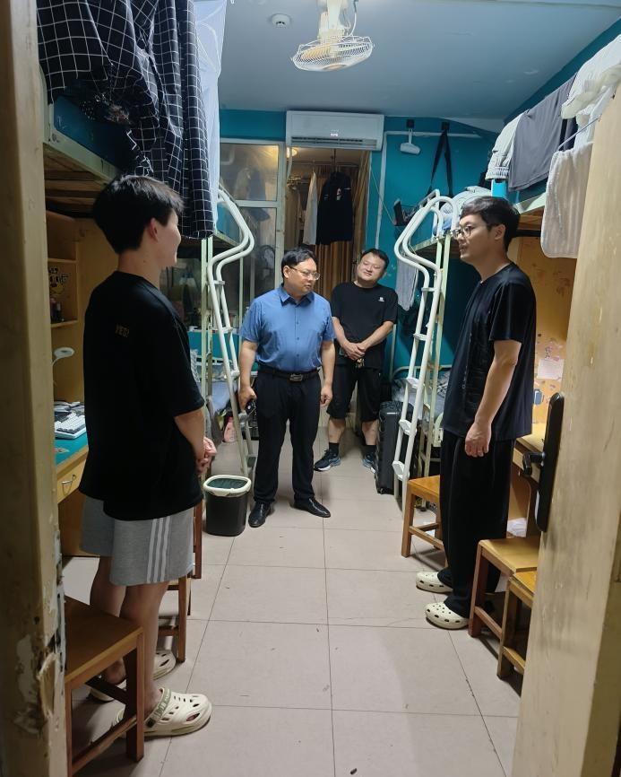 走访过程中,田进军与同学们亲切交谈,详细询问大家暑期学习和生活情况,嘱咐大家注意防暑降温,科学安排作息,做到劳逸结合,特别要加增强安全防范意识,注意宿舍用电安全,遵守学校各项管理规章制度。