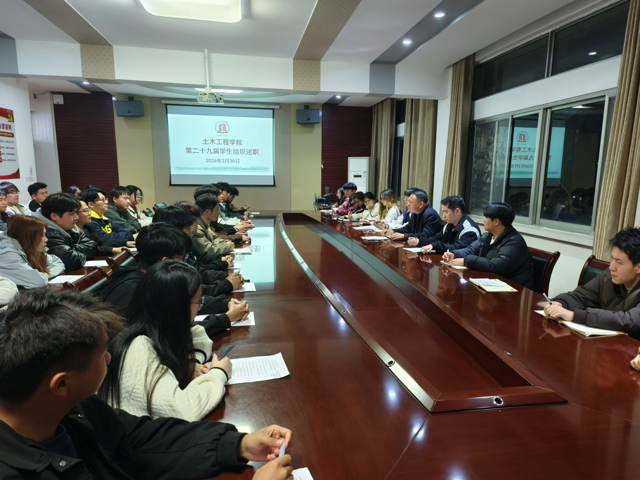 3月30日晚上,土木工程学院在学院会议室召开学生工作会议,学院党委副书记冯博老师出席,辅导员徐航老师主持,第二十九届学生工作人员参加。