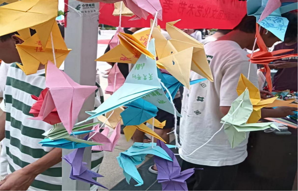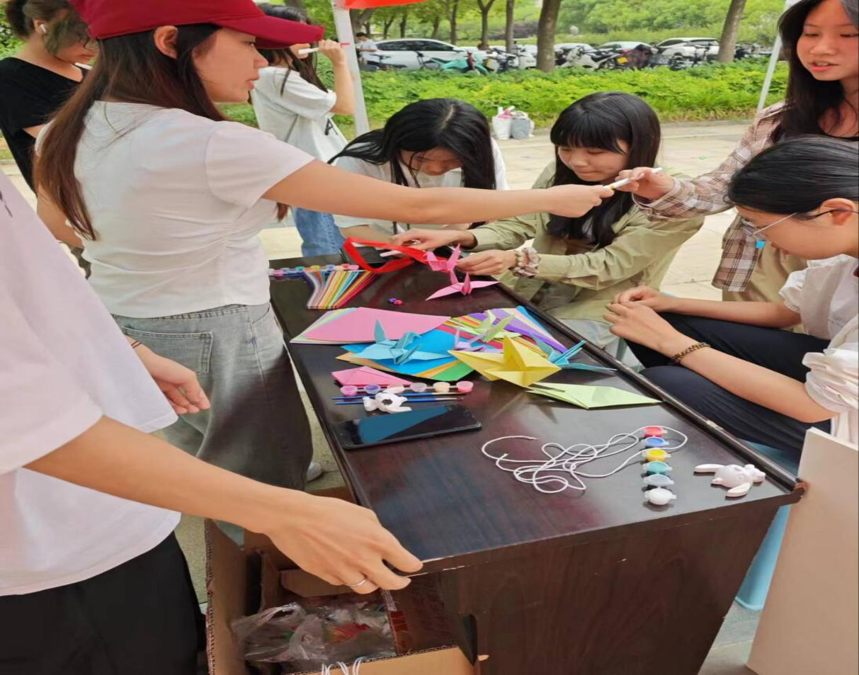 此次活动通过折千纸鹤这一同学们喜闻乐见的活动形式,传承弘扬中华优秀传统文化。同学们在折好的纸鹤上面为自己或朋友写上美好祝愿以及考研目标等,激励自己向理想的高校发起冲刺,同时用折好的千纸鹤换取相应数量的套圈进行游戏。活动现场热闹非凡,充满活力与激情,大家有的在展示自己的才艺,有的在激烈讨论着如何为自己和朋友加油打气,互相交流心得。现场欢声笑语,每个人都沉浸在这片欢乐的海洋中,尽情享受着社团活动带来的乐趣和收获。