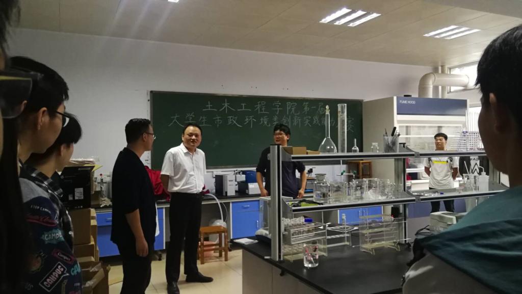 9月28日,土木工程学院第一届大学生市政环境类创新实践能力大赛在学院水质工程实验室顺利举行,学院党委副书记冯博老师到比赛现场给同学们加油鼓劲,科研与社会服务办公室吴帅涛老师、给排水教研室主任宋建阳老师和辅导员邵建力老师参加。前期共有152名同学参加了班级预选赛,12组36位同学脱颖而出参加此次学院决赛,各组队员团结协作,充分展示了扎实的专业功底和操作技能。经过激烈的角逐,我院最终表彰一等奖团队一个、二等奖团队两个、三等奖团队三个,并将选拔成绩优异的两个团队代表我校参加由中国生态环境产教联盟和教育部给排水科学与工程专业教学指导分委员会主办的“全国大学生市政环境类创新实践能力大赛”。此次比赛不仅锻炼了同学们的专业技能和动手能力,也提升了同学们的团队精神和实践能力。