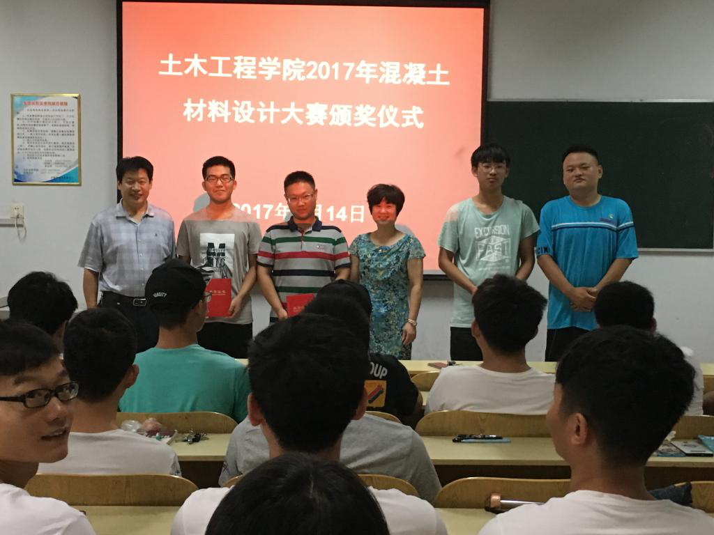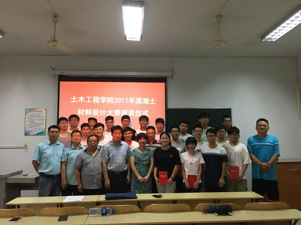 7月14日,由土木工程学院主办的“土木工程学院2017年混凝土材料设计大赛”圆满结束并于当日上午举行颁奖仪式和赛事总结。大赛自6月20日启动,来自土木工程学院4个本科专业的48名同学报名参赛,利用暑假,经过3周的培训并通过理论笔试、配合比设计和实践操作环节,最终评出特等奖一项、一等奖一项、二等奖二项、三等奖三项,共21名学生获奖。