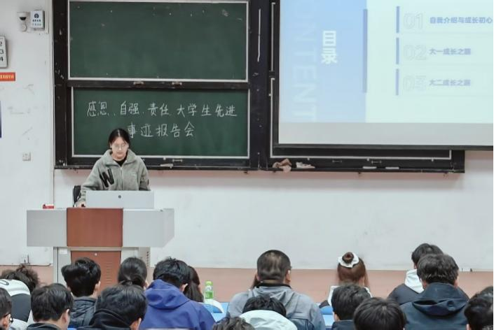 报告会上,5名获得奖助学金的优秀学生代表上台,分享他们在学习、实践、生活中的成长经历和心路历程,用亲身经历为台下同学们讲述一个个充满奋进力量的故事。