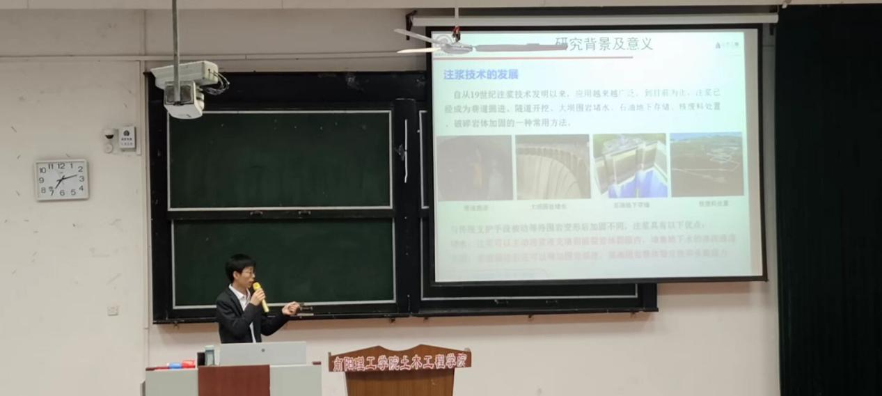 2022年4月29日晚19:00,土木工程学院于五号教学楼五阶二教室成功举办“纳米改性水泥基注浆材料”土木大讲堂。根据疫情防控政策要求,此次讲座设置了分会场。同学们分别在5317、5421、5423三个教室通过直播的形式观看了此次讲座。土木工程学院岩土教研室孙小康老师主讲,2018、2019、2020、2021级部分同学参加。