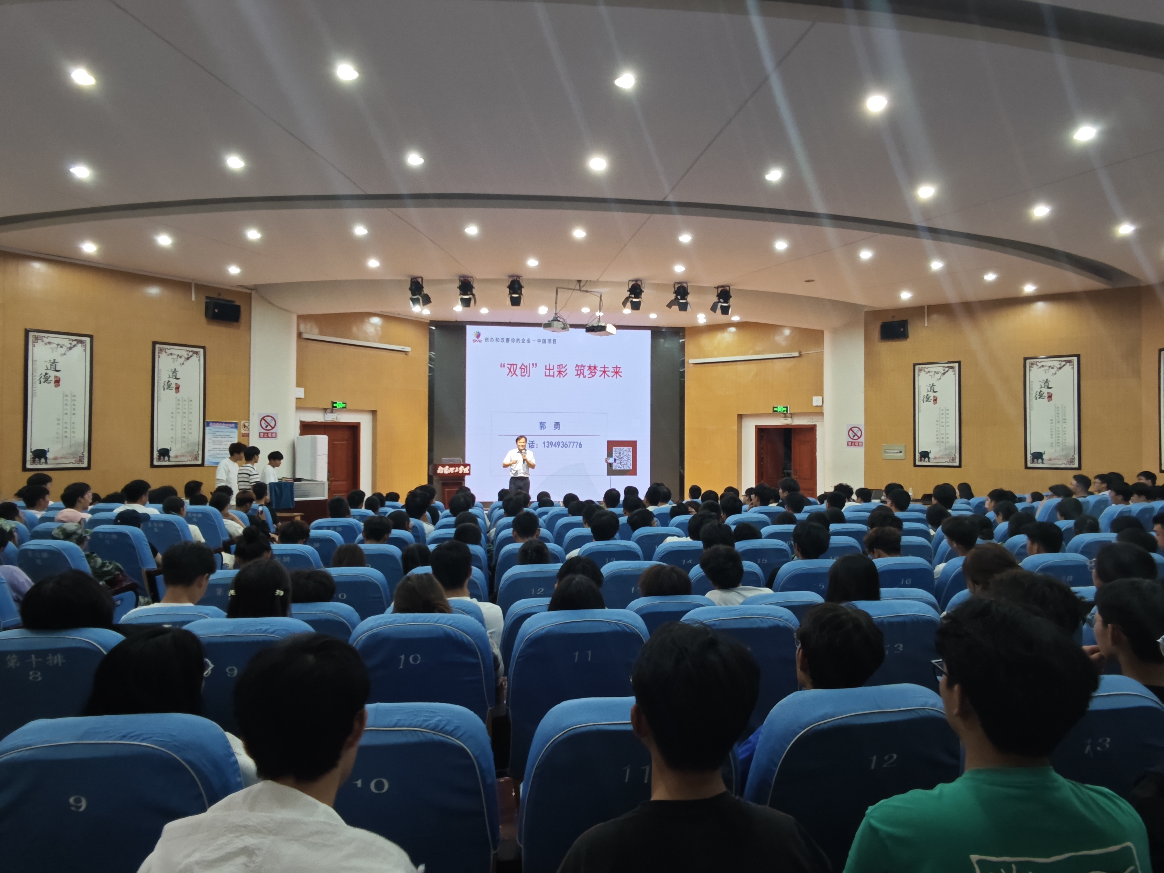 本网讯(特约记者/冀艺晨)9月22日晚,土木工程学院在学校第二报告厅举办土木大讲堂之创新创业专题讲座,邀请学校招生就业处郭勇老师、盛邵鹏老师和优秀创业校友但京川主讲,学院党委副书记冯博老师主持,创新创业就业指导中心主任程科老师和2024级全体同学参加。