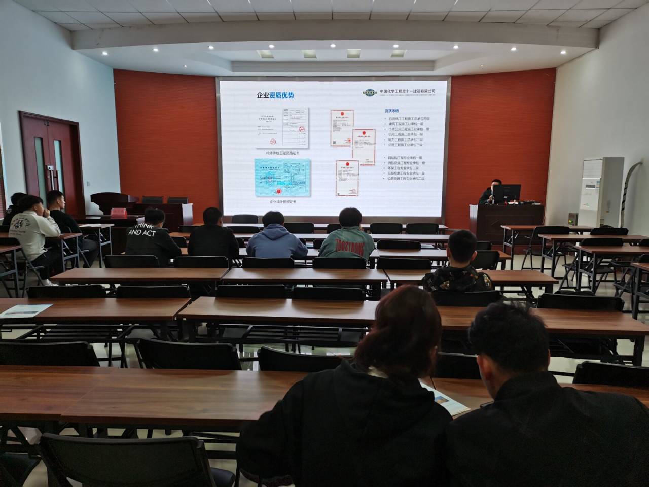11月19日,广东腾越建筑工程有限公司在南阳理工学院大学生就业指导中心多功能会议厅召开专场宣讲会,部分应届毕业生参加。