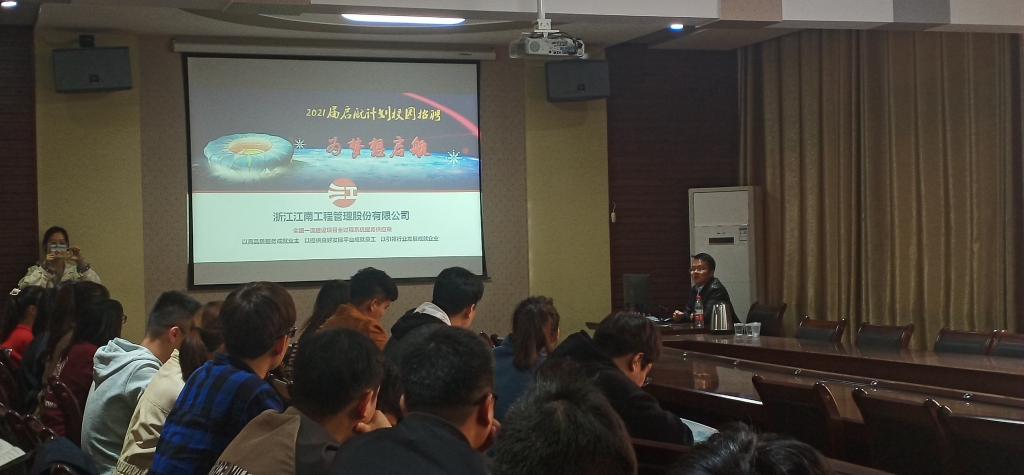 11月2日,浙江江南工程管理股份有限公司于土木工程学院二楼会议室召开专场宣讲会,部分应届毕业生参加。