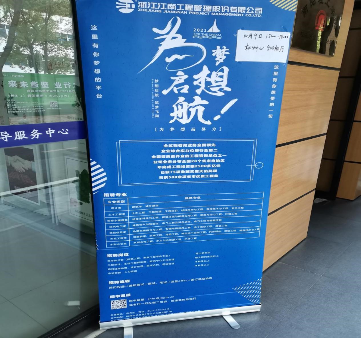 为提高土木工程学院毕业生的签约率与就业率,我院搭建了企业与学生面对面交流平台,10月9日,浙江江南工程管理股份有限公司于我校大学生就业服务中心多功能厅召开专场宣讲会,由贡先生担任主讲,部分应届毕业生参加。