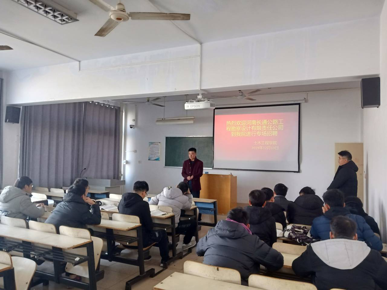 (就业指导中心 文/蔚正豪) 为提高我院毕业生签约与就业率,搭建企业与学生面对面交流平台,12月13日,河南长通公路工程勘察设计有限责任公司于我院5508教室召开专场招聘会,我院部分应届毕业生积极参加。