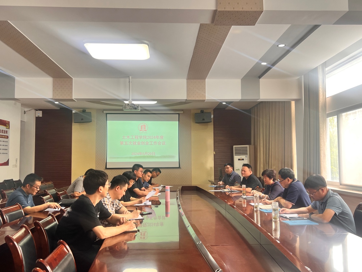 5月20日下午,土木工程学院在学院会议室召开2024年度第五次就业创业工作会议,学院领导班子、各专业(方向)负责人、毕业班辅导员和就业专干参加。