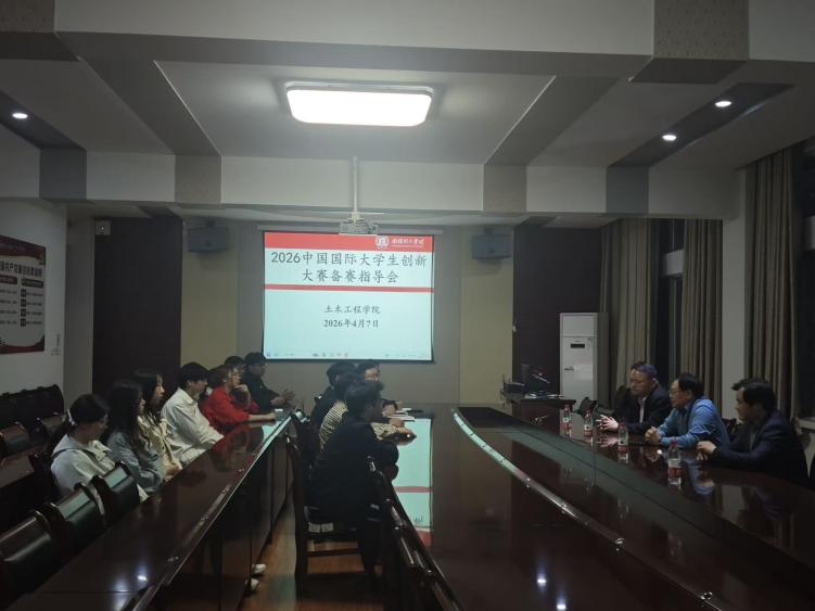 4月7日晚,土木工程学院在学院会议室举办2026中国国际大学生创新大赛备赛指导会,邀请学校招生就业处郭勇老师主讲,学院党委书记田进军主持,学院党委副书记冯博、创新创业就业指导中心主任程科、学院部分创新创业骨干教师及学生代表参加。