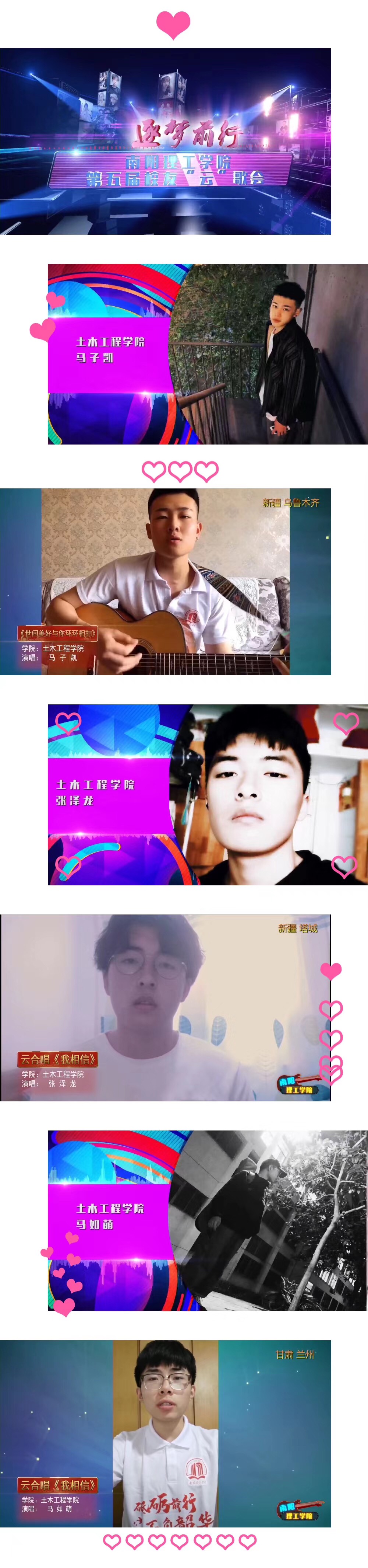 6月28日晚,“逐梦前行”南阳理工学院第五届校友“云”歌会在云端绽放,来自全校13个教学院的50余名师生,分别在28个省、市、自治区自己的家乡,用28首歌曲共同送别2020届毕业生,为他们的逐梦之路唱响一曲铿锵离歌!