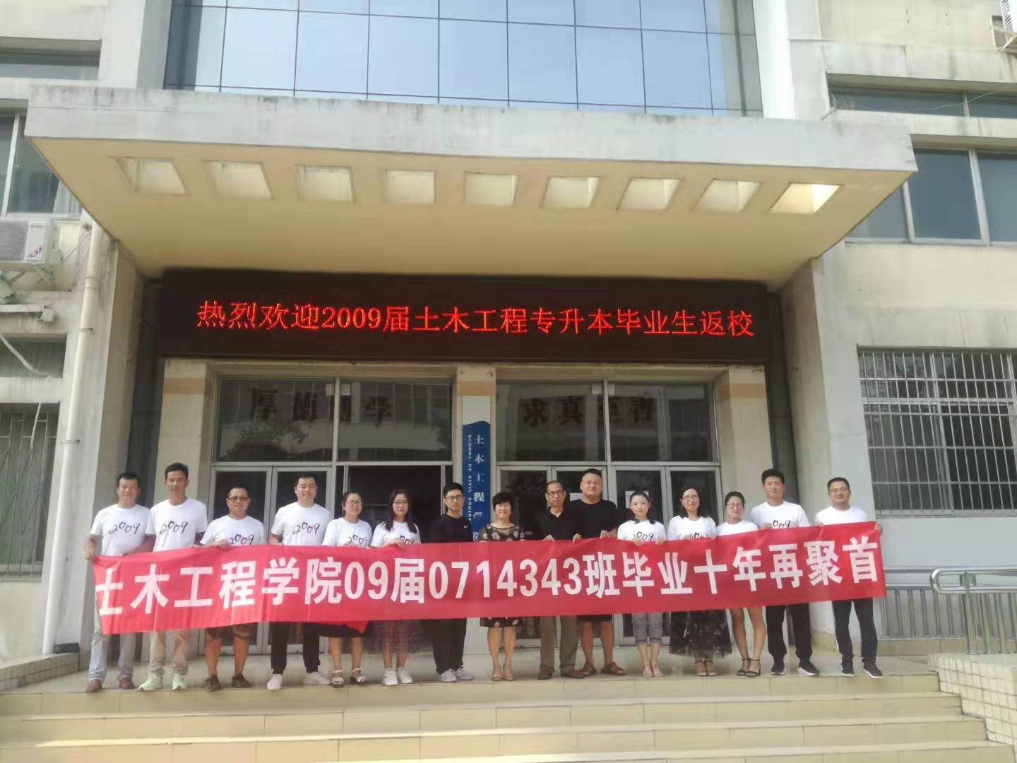 7月20日下午,土木工程学院土木工程专业0714343班12名校友回到阔别已久的母校,在五号教学楼二楼会议室共庆毕业十周年,追忆同窗旧事,畅谈人生感悟,展望美好未来。土木工程学院院长陈孝珍、施工教研室主任王付洲、土木工程专业教师尹晓清、科研处刘硕、团学办冯博参加了此次聚会。