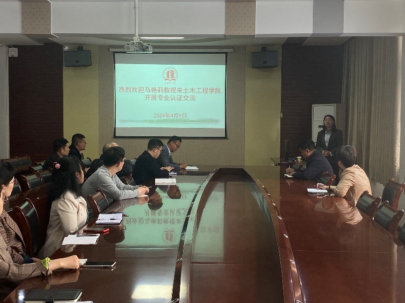 2024年4月9日,土木工程学院召开给排水科学与工程专业工程认证交流会,会上邀请了张仲景国医国药学院食品科学与工程专业负责人、教研室主任马艳莉教授为我院教师分享食品科学与工程专业工程认证工作的相关经验。院长陈孝珍、副院长肖新科、给排水科学与工程专业负责人宋建阳、土木工程专业负责人陈峰和其他专业核心课任课教师参加会议。