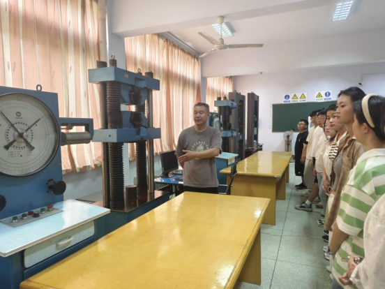 在老师和学长团的带领下2024级新生依次走进结构实验室、BIM实训室、材料力学实验室、材料实验室、工程测量实验室、土工实验室、水质工程实验室、水力学实验室等。在进入实验室后,先进的实验设备和整洁干净的环境立刻吸引了学生们的目光,各实验室管理老师向新生们介绍实验室的基本情况、实验室设备功能等。
